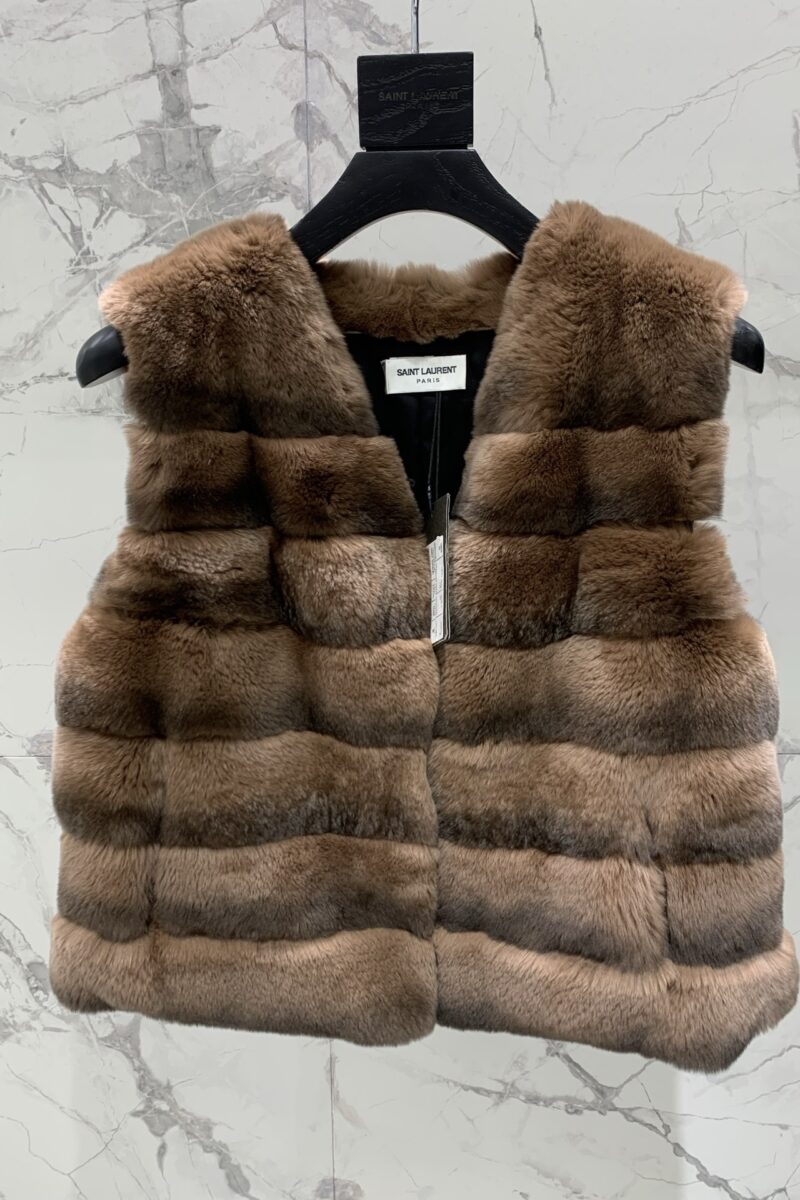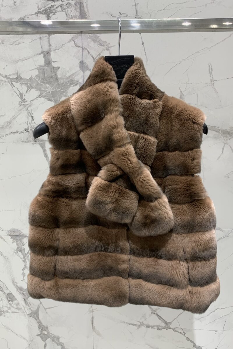 Gilet Sans Manches En Fausse Fourrure Rayée
