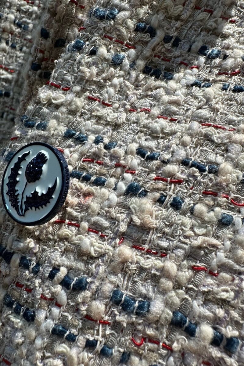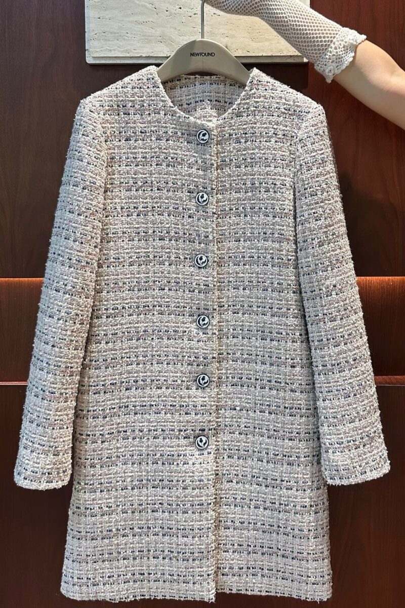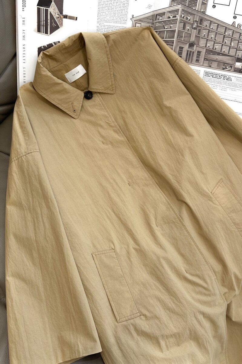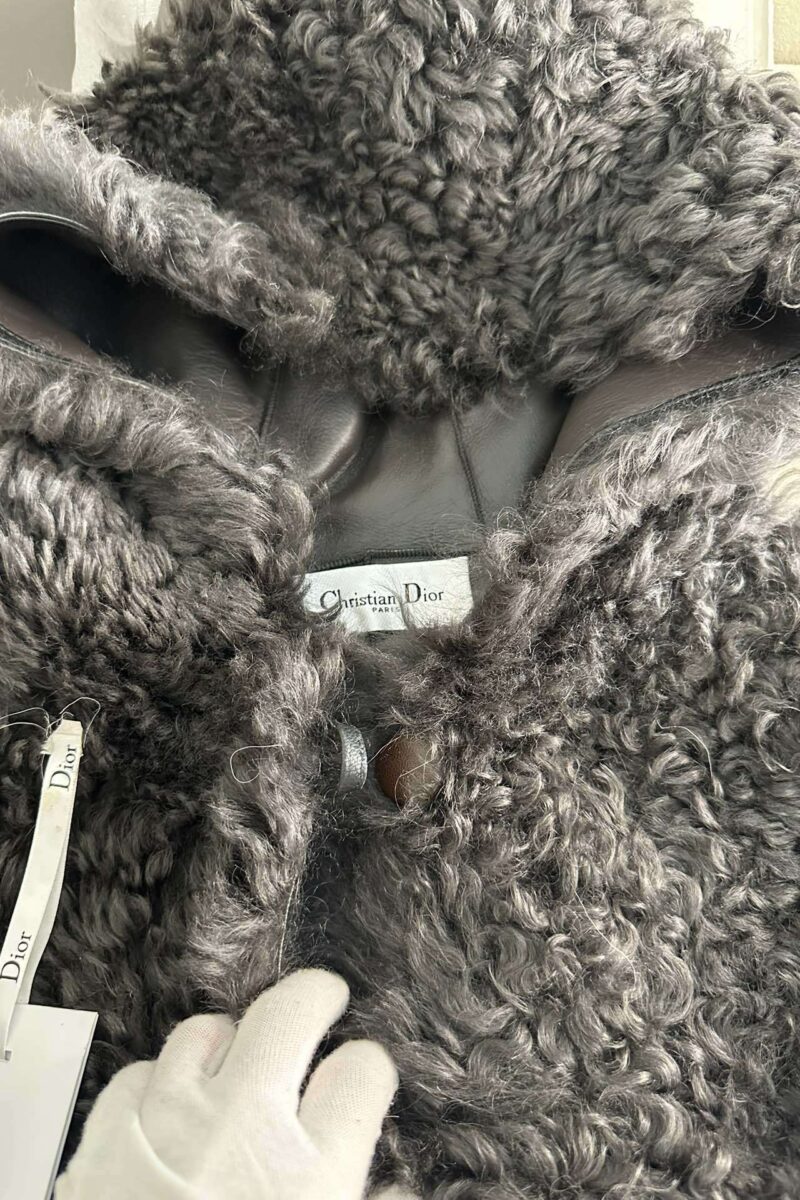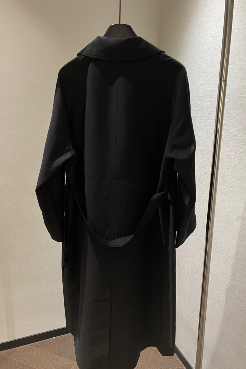Manteau ceinturé laine & cachemire, col shearling beige grège