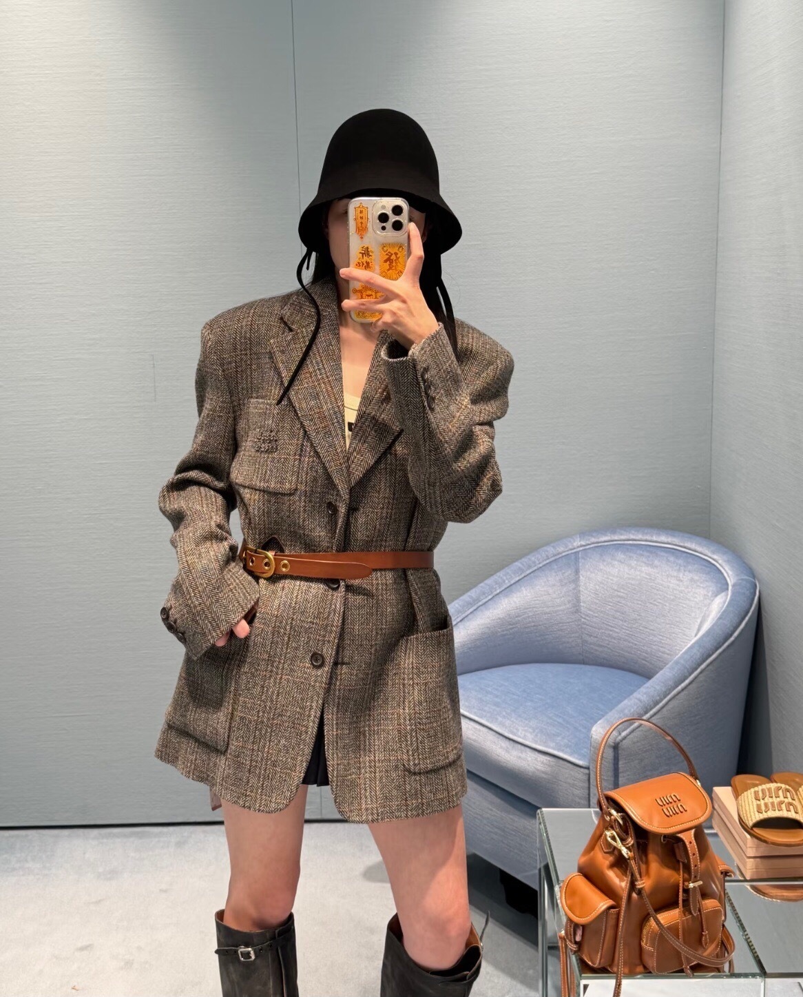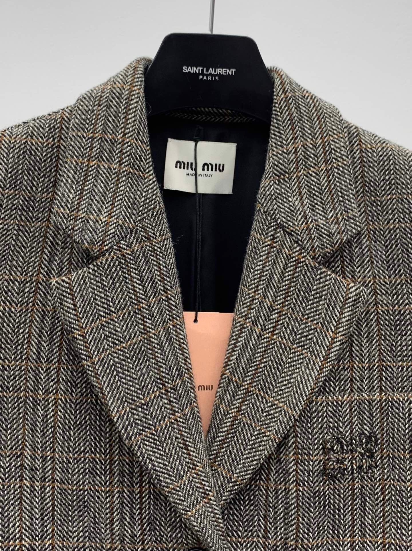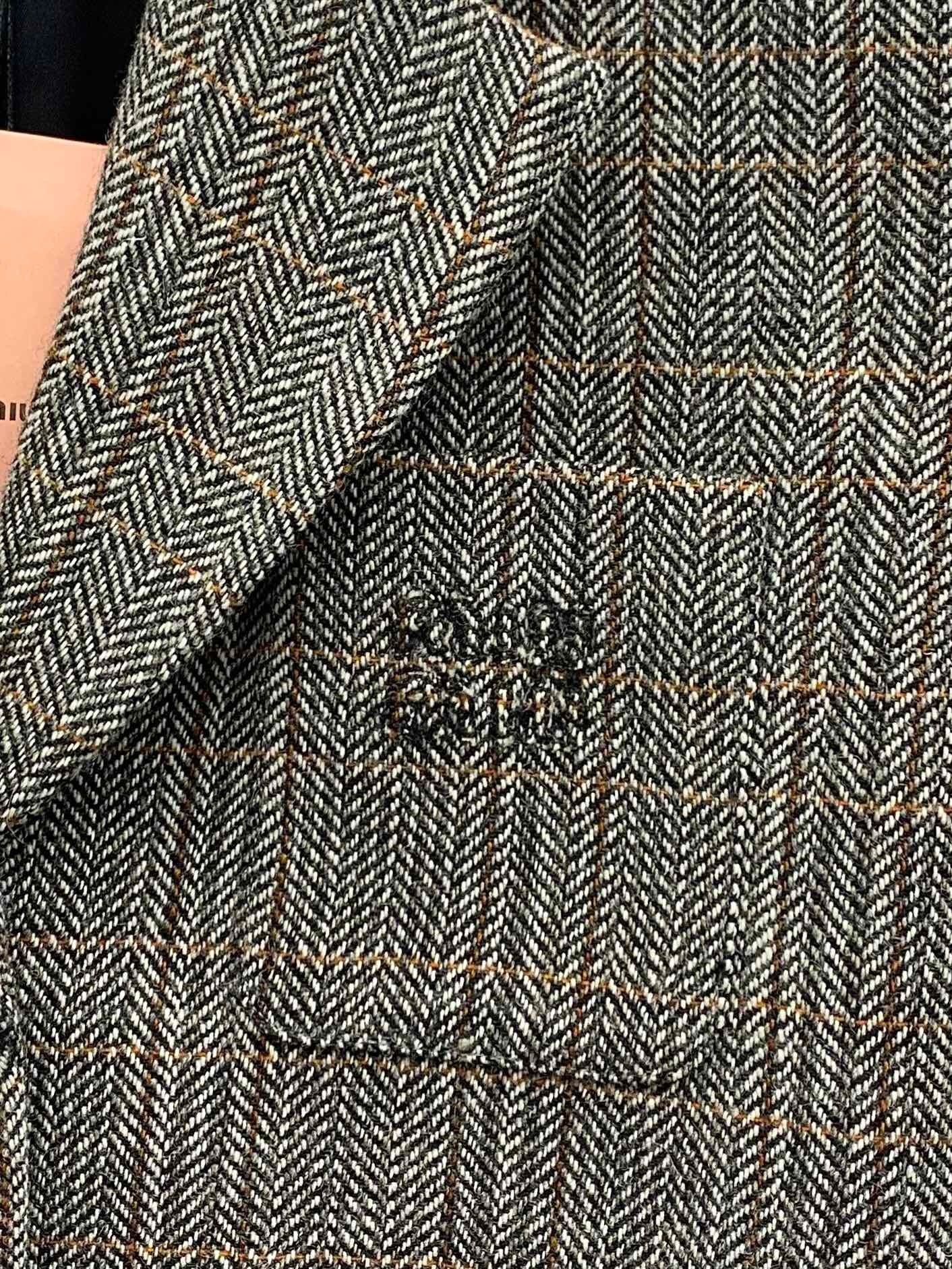 • Matière : Tissu épais et texturé (style tweed) avec un motif à carreaux subtil.