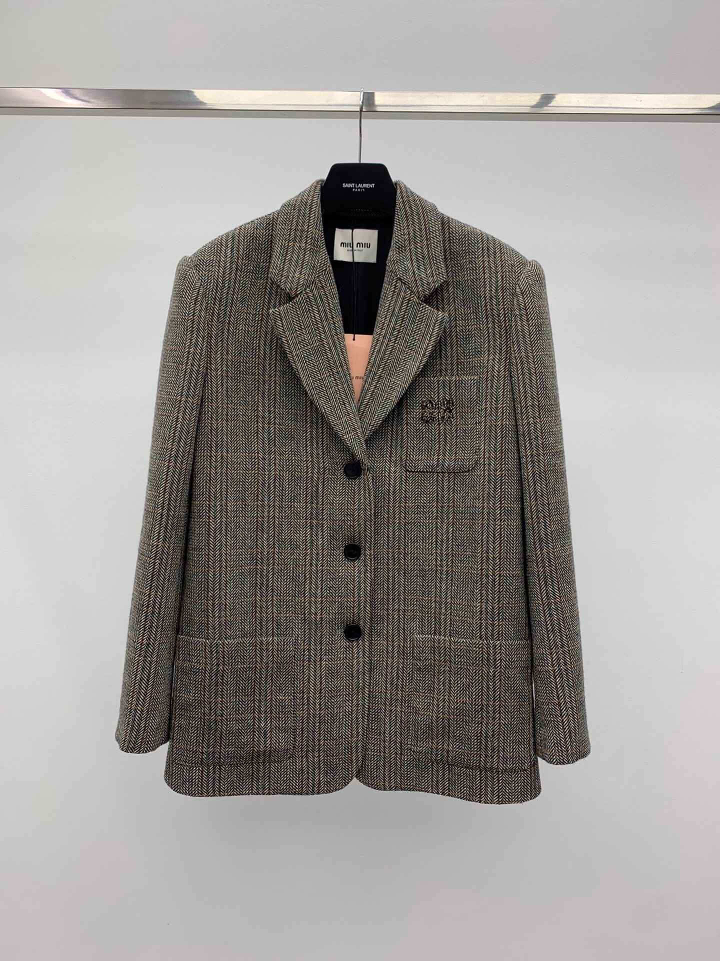Un blazer classique au motif à carreaux distinctif. Sa coupe structurée et sa matière texturée en font une pièce intemporelle pour un look élégant et sophistiqué.