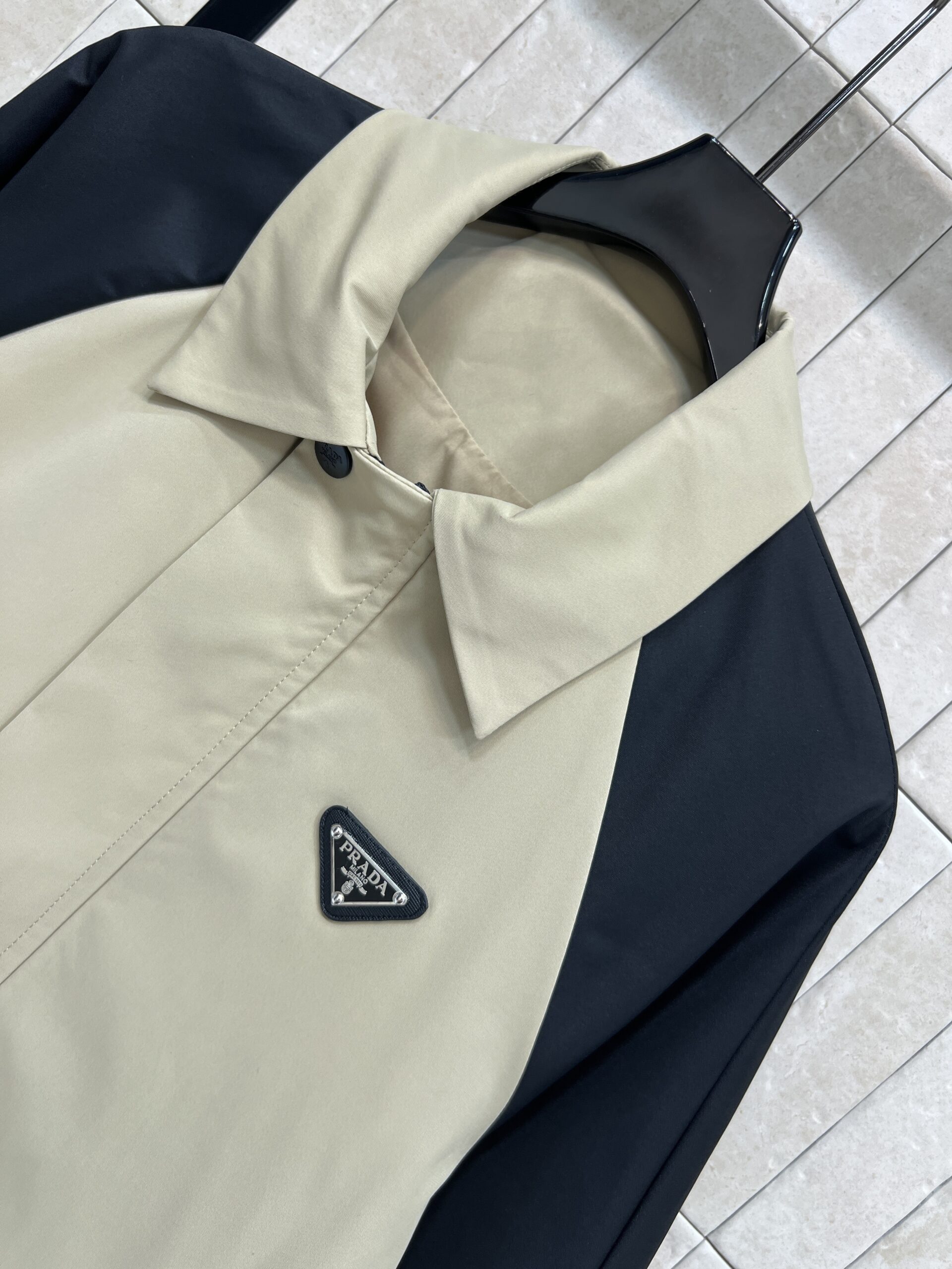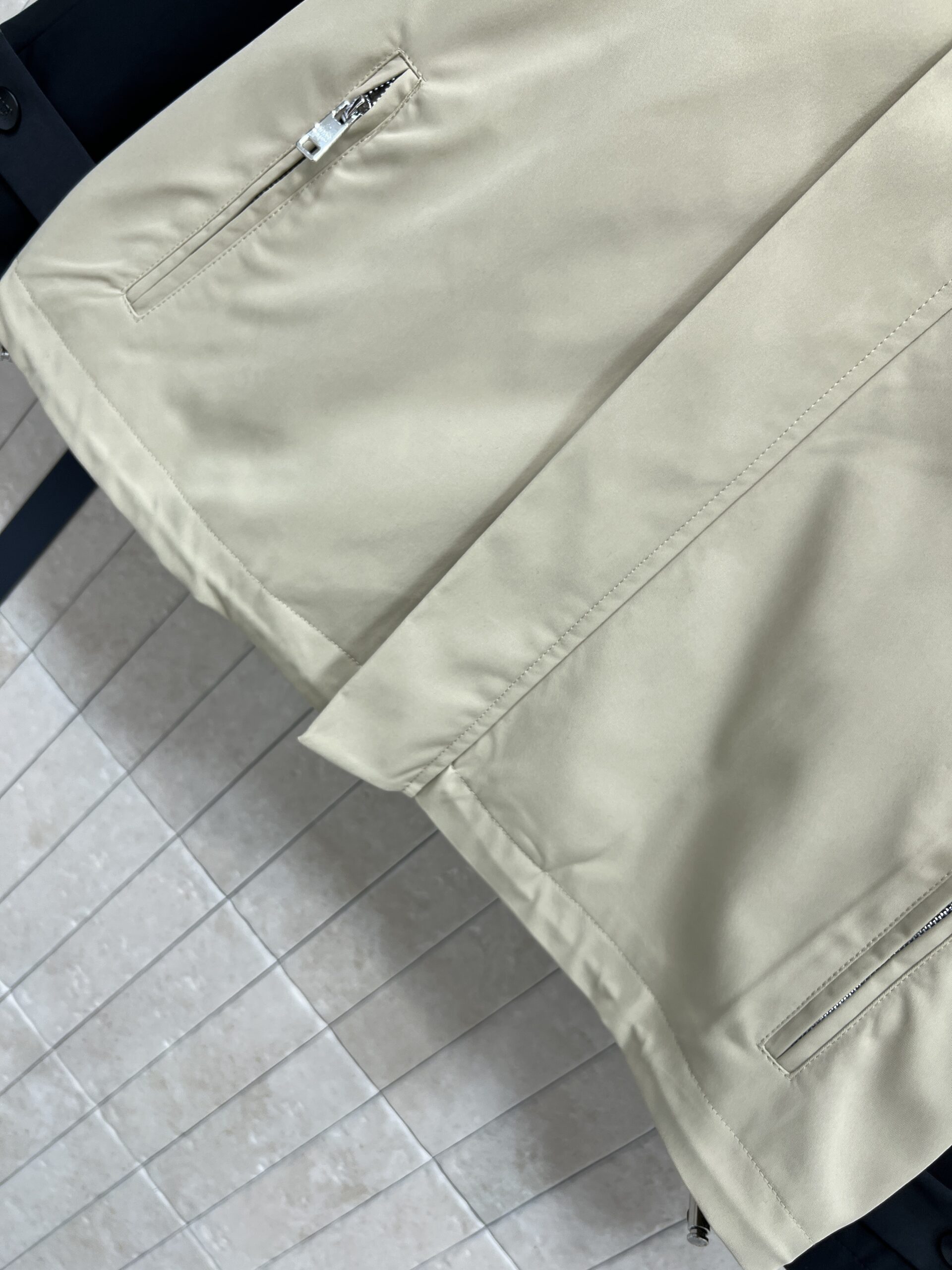 Une veste légère au style graphique, bicolore beige et noir. Dotée de manches raglan contrastantes, de poches zippées et d’un col classique. Parfaite pour un look moderne.
