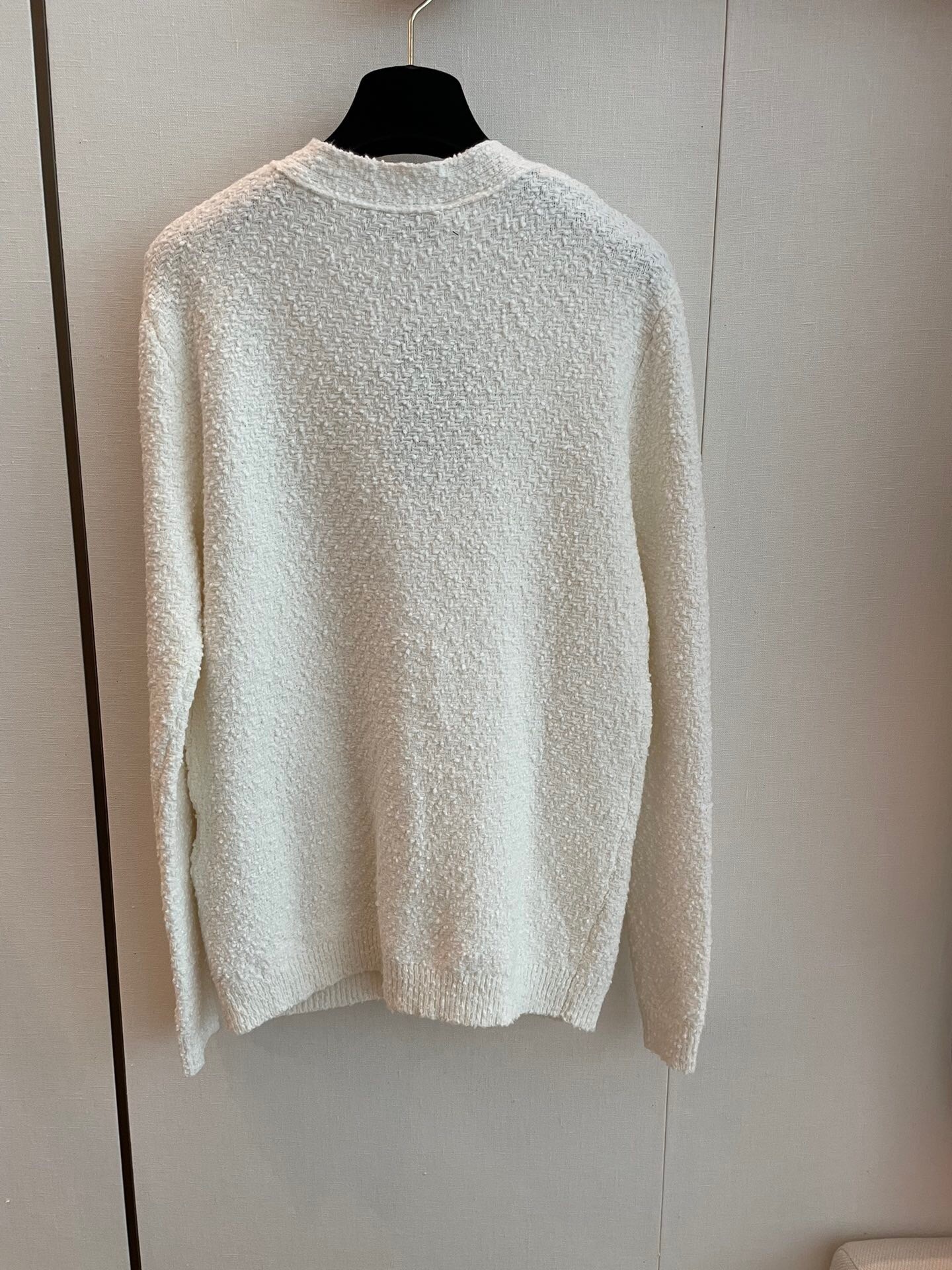 Ce cardigan à col V est un essentiel de la garde-robe, alliant une texture riche à un design intemporel. Sa couleur blanc cassé le rend facile à associer et parfait pour toutes les saisons.