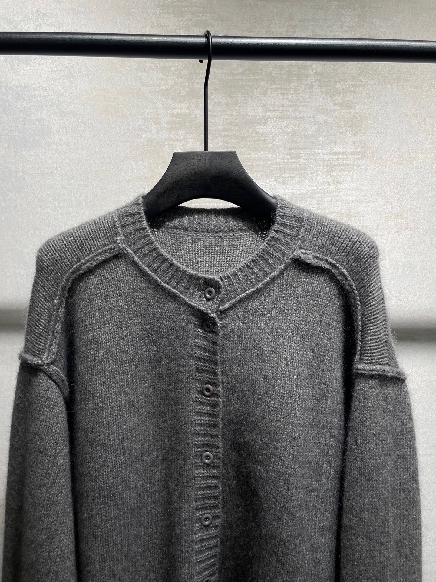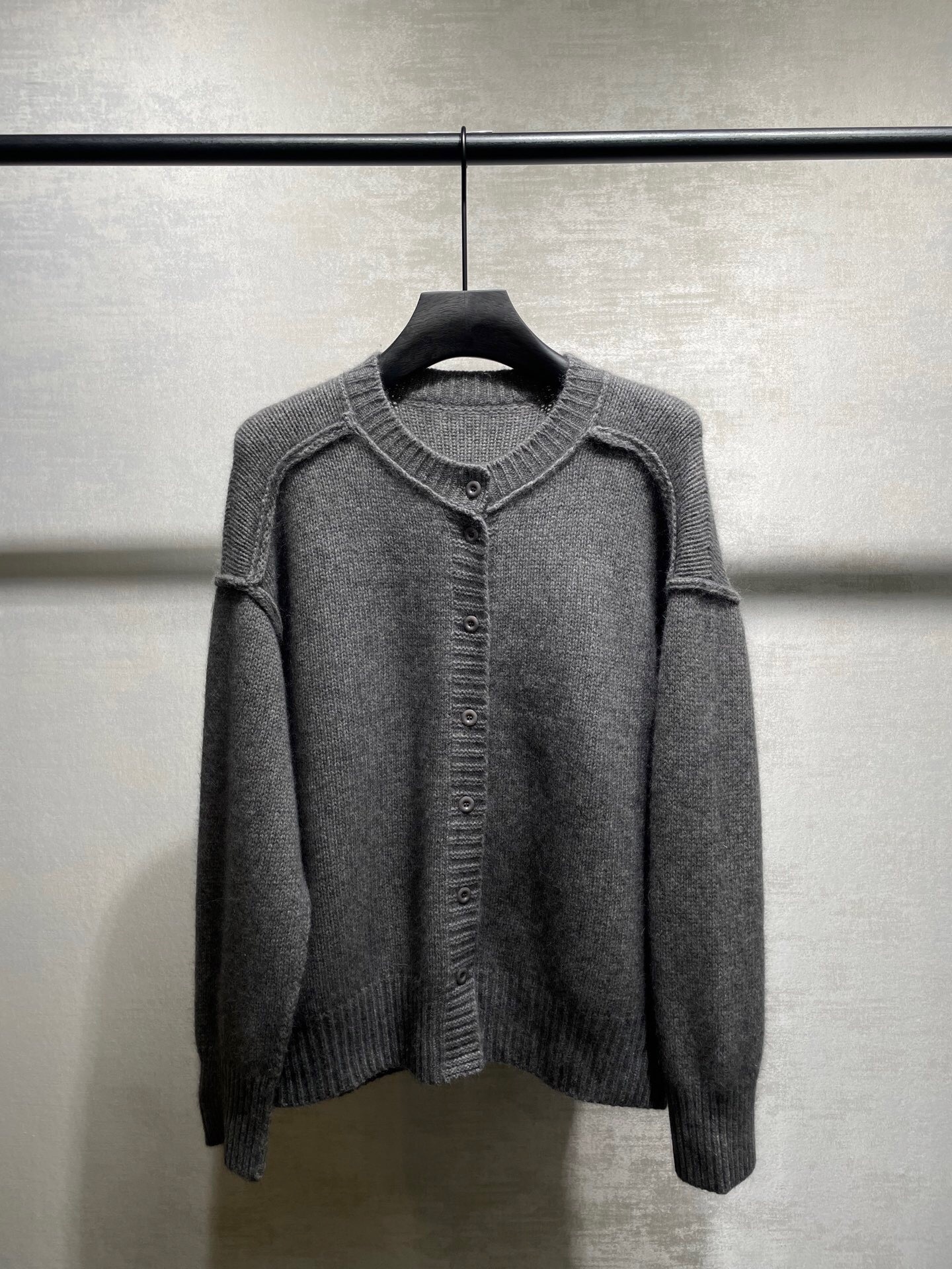 Un cardigan essentiel en maille gris chiné. Sa coupe épurée, son col rond et ses coutures apparentes aux épaules offrent un look minimaliste et moderne. Confortable et facile à associer.