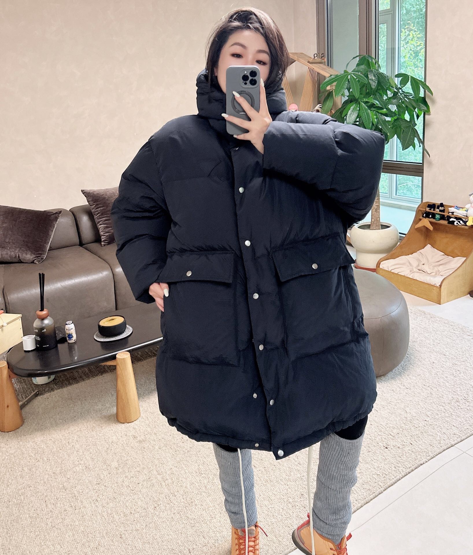 Cette doudoune longue est la pièce maîtresse idéale pour affronter le froid avec style. Sa coupe oversize volumineuse offre un confort maximal et un look résolument moderne, tandis que sa couleur noire la rend facile à associer.